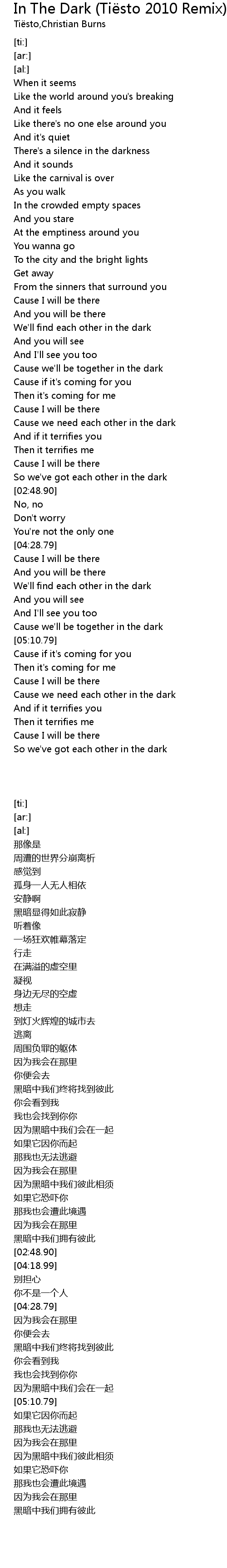 In The Dark Tiesto Lyrics - Italian translation of in the dark by tiesto.