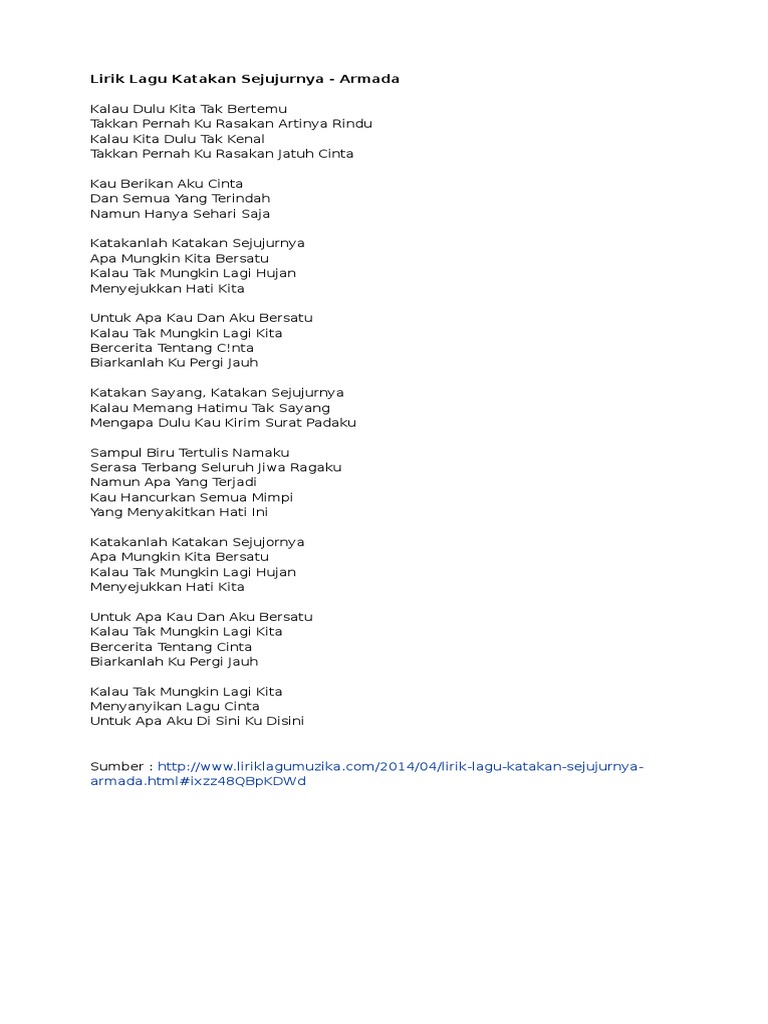 Katakan Sejujurnya Lirik - C kalau tak mungkin lagi hujan.