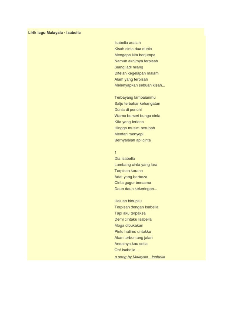 Lirik Lagu Isabella Search : Lagu ciptaan dari m nasir dan bob lokman tersebut pertama kali dipopulerkan oleh grup musik search asal malaysia.