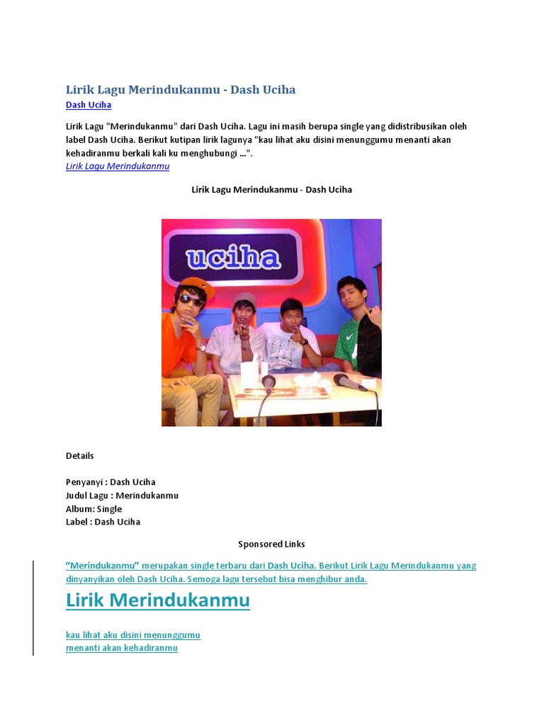 Lirik Lagu Merindukanmu Dash Uciha - Download lagu, lirik lagu, dan video klip terbaru.