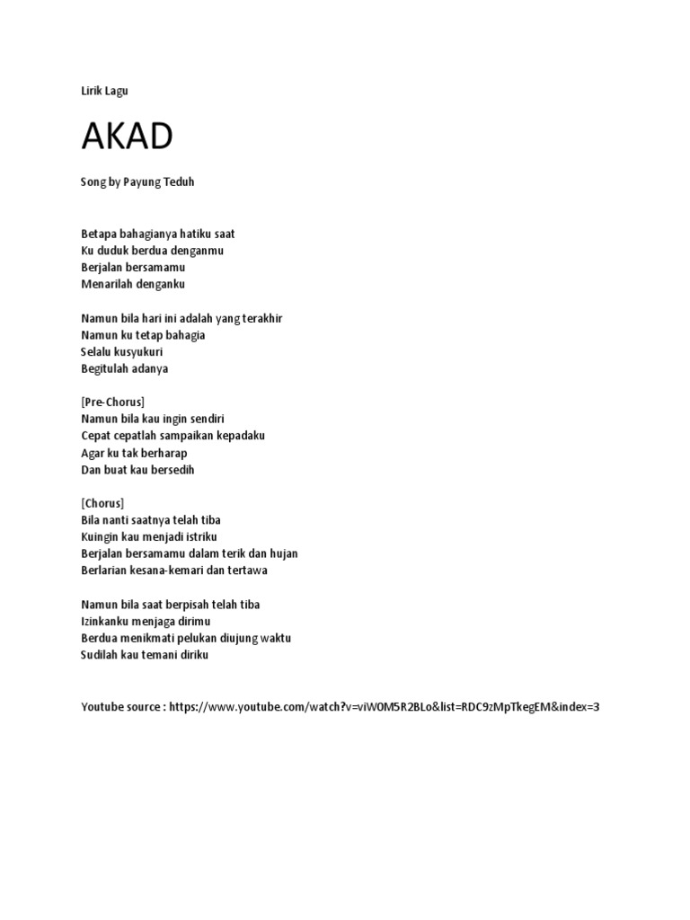 Lirik Lagu Payung Teduh Akad : Dalam akad, payung teduh menggambarkan suasana bahagia di sebuah prosesi akad nikah.