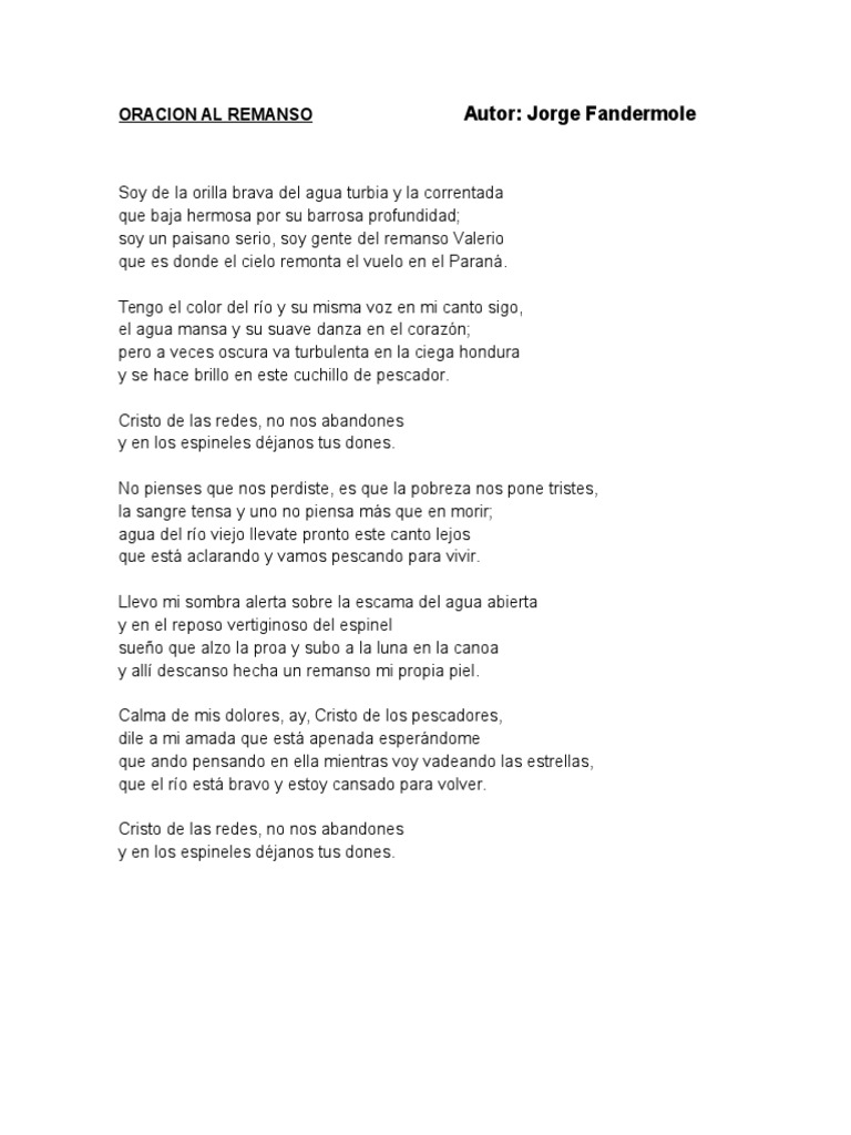 Oración Del Remanso Letra : (letra y música de jorge fandermole).